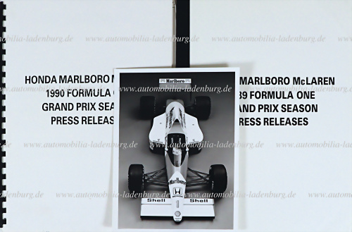 Konvolut 2tlg., zwei Kataloge "Honda Marlboro McLaren 1989 Grand Prix Season Press Releases" 1989 und 1990, dazu original Pressefoto McLaren MP4/5 März 1989, selten