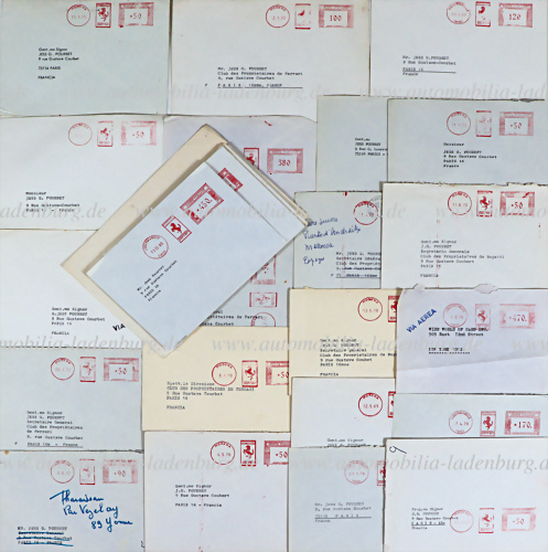 Konvolut 35 Versandumschläge von Ferrari Modena an Jess G. Pourret, 60er-80er Jahre
