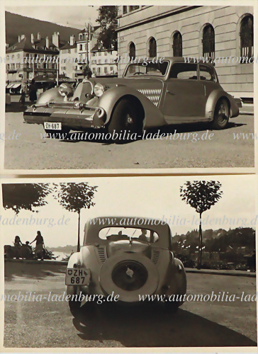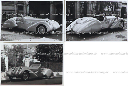 Konvolut zwei original s/w Aufnahmen, der Talbot Lago von Hans Christensen, Zürich, der Wagen ist mit einem Generator "System Christen" ausgestattet, 8,5x12,5cm