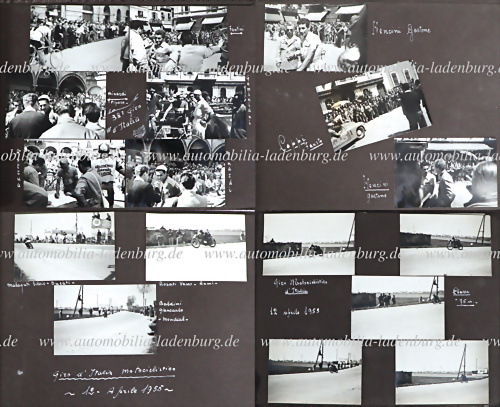 Fotoalbum Italien 1955/1956, mit insgesamt 67 s/w Aufnahmen von Sportveranstaltungen, darunter 21 Fotos Mille Miglia 1955 (Maserati, Mercedes Benz, Ferrari), 15 Fotos Giro d´Itlalia Motorrad (Mondial, Rumi, Ducati), dazu zahlreiche Fotos Giro d´Italia Fahrrad...
