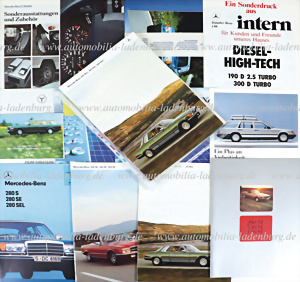 70er/80er Jahre Konvolut 26 tlg. Verkaufsbroschüren/- Prospekte, darunter u.a.: 280/350/450 SL; 450 SLC 5.0; 500 SLC; 500 SL; 280 S/SE/SEL; "Sonderausstattung und Zubehör" G-Klasse; "Der neue Mercedes T" Fotoalbum, etc., guter Zustand