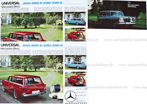 1966, Konvolut 3tlg. Broschüren Mercedes Benz Universal, darunter 2 Faltprospekte Univeral 200/D & 230/S, einmal de., einmal fr. Text, letztere mit Notizen, sowie kleinerer Faltprospekt 6 Seiten & 4 Seiten Technische Daten Sonderausführung, de. Text, mit Archivstempel, guter Zustand