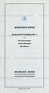 1955, Sammel-Preisliste Nr.1 für Personenwagen/ Lastkraftwagen/ Omnibusse, 5 Seiten de. Text, inkl. 300 SL, bis auf kleine Knickspur guter Zustand