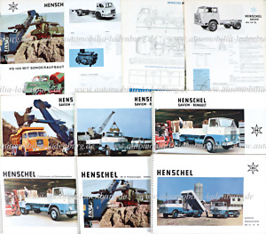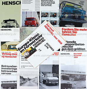 60er Jahre, Konvolut 2 Henschel Mappen, innen mit insgesamt 45 Einblatt-/ Faltprospekten und Katalogen zu Nutzfahrzeugen, darunter z.B.: HS 13 HK; HC 11 TL; HS 19 HL; HS 26 HAK; 1965/ -66 & -69 Programm, etc., nl./ de./ fr. Text, guter Zustand