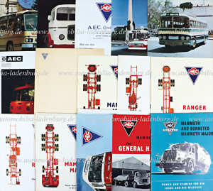 50er-60er Jahre Konvolut ca. 70 tlg. Verkaufsprospekte/-Kataloge Nutzfahrzeuge, darunter z.B.: Mansator MK 3; Mammoth Major MK 3; Regal MK 3 & 4; Mercury MK 2; Monarch MK 4&5; Ranger; Mogul, sowie 34 Ausgaben "AEC News", etc. en./ el. Fr. Text, guter Zustand