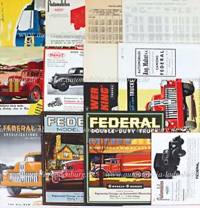 Konvolut ca. 25 tlg. 30er-60er Jahre Verkaufsprospekte /-Kataloge, darunter z.B.: 1938 Trucks Faltprospekt; Coach Prospekt mit Preisliste & SPezifikationen; T19; 1937 "The Truck of Value"; DLR 8000, etc. fr./ en./ nl. Text, dem Alter entsprechend guter Zustand.