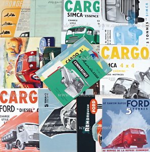 50er Jahre, Konvolut 16 tlg. Verkaufsprospekte/- Nutzfahrzeuge Ford & Simca, darunter z.B.: Ford Cargo / Remorqueur; Simca Aronde 1300; Simca Essence; Ford 3T5, etc., größstenteis fr. Text, tw. mit Gebrauchsspuren