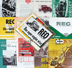 Konvolut 24 tlg. 40er-70er Jahre, Verkaufsprospekte/-Kataloge Nutzfahrzeuge, darunter z.B.: 1940 Dodge; 1946 Chevrolet; FWD Traktioneer Fire Apperatus; 1946 Spezifikationsliste FWD 6/8 Tonnen; Reo Fuel Delivery Trucks; 1940 Sterling Chain Drive Trucks 1974 Terrex Titan Werksfotos; etc. en./ fr. Text, guter Zustand