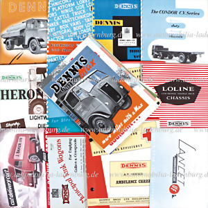Konvolut 38 tlg. 40er-50er Jahre Verkaufsprospekte/-Kataloge Nutzfahrzeuge, darunter z.B.: 8 Ringebundene Kataloge u.a.: von Ambulance Chassis; Pax 3; Condor; Heron, etc., 1947 Katalog "Municipal Tank Wagons"; "The Lancet three" Katalog; Prospekte zu Falcon, Jubilant; Lancet; Horla, etc.überwiegend engl. Text, guter Zustand