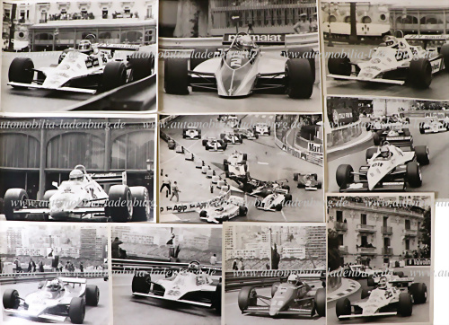 Konvolut 10 original s/w Aufnahmen (Hewett), Grand Prix Monaco 1976-1979, darunter Watson auf Brabham Alfa Romeo, Villeneuve auf Ferrari 312T4, Peterson auf Tyrrell P34, Pironi auf Tyrrell...20x25cm