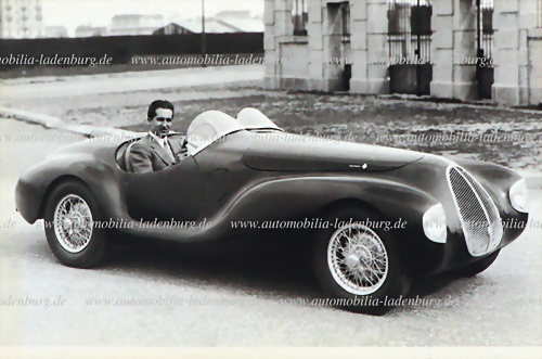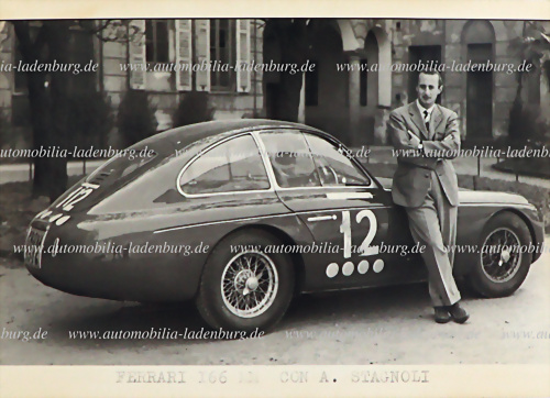 original s/w Aufnahme, Antonio Stagnoli mit seinem Ferrari 166 MM Zagato 'Panoramica' Berlinetta (#0018M), Coppa Inter Europa Monza 1950, 10,5x14,5cm
