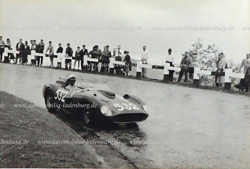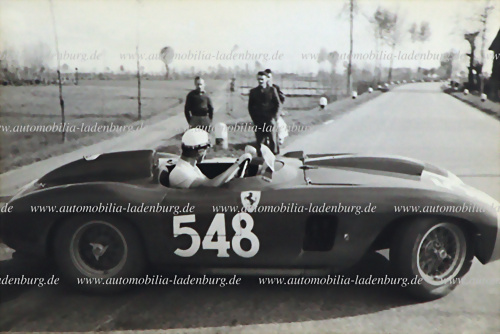 original s/w Aufnahme, Graf Berghe von Trips auf Ferrari 315S (#0674), Mille Miglia 1957, 10x14cm