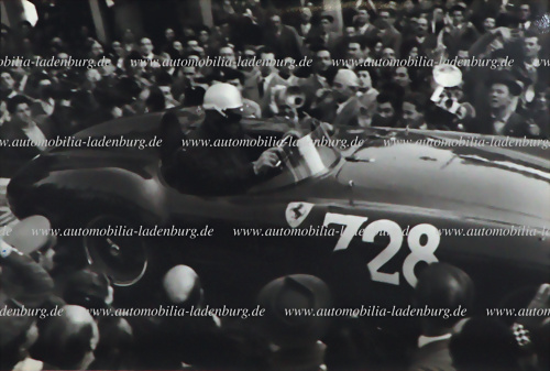 original s/w Aufnahme, Piero Taruffi auf Ferrari 118LM Spyder Scaglietti (#0546LM), Mille Miglia 1955, 10x14cm