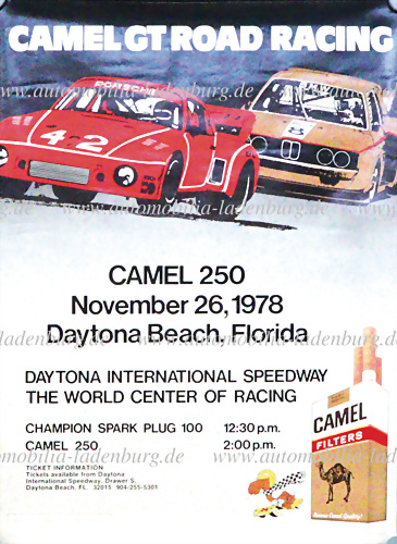1978, Konvolut zwei Veranstaltungsplakate "Camel 250 Daytona Beach", (Porsche 935, BMW 3.5 CSL), 70x51cm, guter Allgemeinzustand
