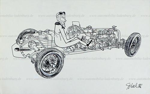 original Tuschezeichnung, Maserati 8CM, handsigniert Michelotti, 29x44cm
