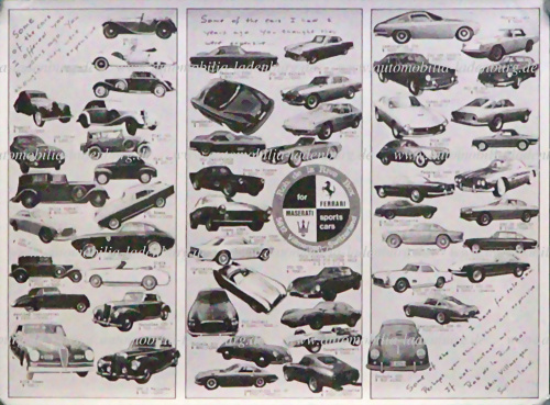 Werbeposter "Rob de la Rive Box - for Ferrari Maserati sports cars - Villmergen Switzerland", mit Abbildungen des Fahrzeugbestandes, 43x59cm