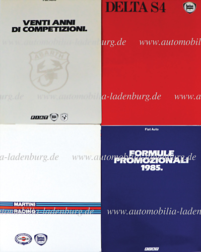 1985, Pressemappe "Programmi Sportivi 1985", innen mit 4 einzelnen Pressemappen, Lancia Delta S4, Formula Promozionali (Uno, Panda), Lancia Martini Racing (037...), Venti Anni di Competizione, alle vollständig mit Pressefotos, italienischer Text, guter Zustand