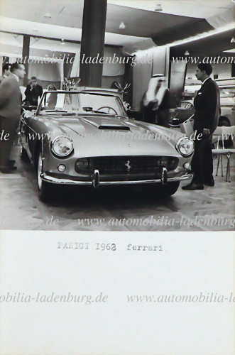 original s/w Aufnahme, Ferrari 250 GT Cabriolet S2 wohl Salon Paris 1963, 18x13cm