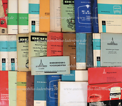 Konvolut 30 Betriebsanleitungen Lastkraftwagen / PKW verschiedener Hersteller darunter MAN, Mercedes-Benz, Deutz..., u.a. L/LP/LAK 1413; L312; MAN Typ 620 L1; Deutz H0153-8F; Magirus-Deutz Mercur-Saturn; Magirus-Deutz S3500; Mercedes-Benz 219; Mercedes-Benz 319D - O319D; MAN Diesel 1580D-15215D;... mehr