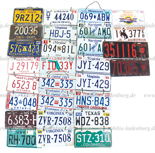 Konvolut 27 US Kennzeichen u.a. 2 Kennzeichen Pennsylvania 1919; Pennsylvania 1951; US-Force Germany 1960; Wyoming 1978; Virgina 1993; Washington 1989, Ontorio 1972, Ohio 1972, Texas 1982; Colorado, North Carolina...