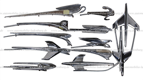 Konvolut 11 US-Kühlerfiguren 50er Jahre, u.a. Studebaker 1950/51; DeSoto 1952; Chevrolet 1954; Chrysler 1949/50; Chevy 1955/56; Pontiac 1955/56; Cadillac 1946; Packard Clipper 1956; Plymouth 1951; Imperial 1953/54, sowie Dodge 1951-53