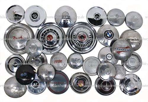 Konvolut 30 Radkappen verschiedener Hersteller wie VW, Lloyd, Chevrolet, Packard, Nash, Mercury, Oldsmobile, Pontiac, Alfa Romeo, Lancia, Goliath, MG...., gebraucht