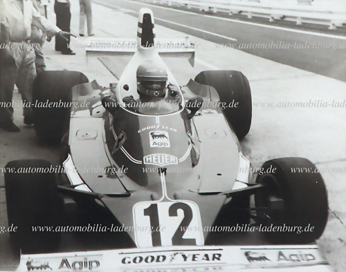 Original s/w Aufnahme Niki Lauda auf Ferrari 312T, 18x22cm