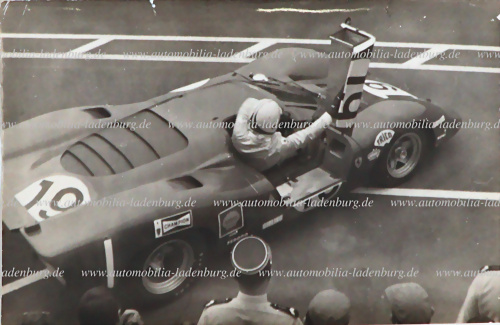 Original s/w Aufnahme John Surtees auf Ferrari 156 "Aero" GP Mexiko 1969, 10,5x16cm