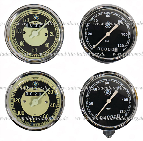 Konvolut 4tlg. an Motorrad-Tachometern BMW, darunter VDO 0-140km/h (1486/92), VDO 0-120km/h ('94), 2x Veigel 0-120km/h, nicht auf Funktionalität geprüft