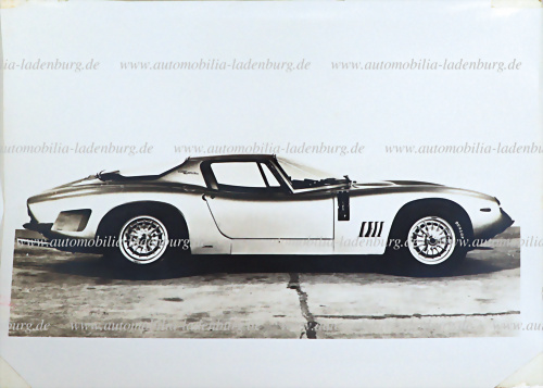 Original s/w Werksaufnahme Bizzarrini GT Strada 5300, 18x25,5cm, mittiger Knick sowie Abnutzungen an Rändern u. Ecken