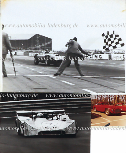 Konvolut 3tlg., darunter 1971 original Farbaufnahme Ferrari 166 MM Touring Berlinetta LM (#0066M) 7x7,5cm, Archivabzug 70/80er Jahre Fangio auf Ferrari D50, Sieger Grand Prix England 1951, 20x25cm, sowie orig. s/w Aufnahme Bell auf Mirage GR7 1970er Jahre, 13x18,5cm, teils mit Verfärbungen u.... mehr