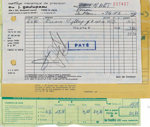1974, 3 Lieferscheine bezüglich Ersatzteillieferung NART Vorbereitung Le Mans 14.06.1974 für Ferrari 312 P, Ferrari 308 GT4, Ferrari 365 GTB/4, alle ausgestellt an Ferrari NART Le Mans