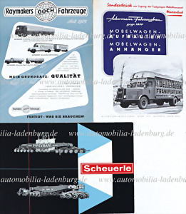 Konvolut 3 Verkaufsprospekte Raymakers Goch Fahrzeuge; Verkaufsprospekte Scheuerle, dazu Sonderdruck Ackermann Möbelwagen-Aufbauwagen