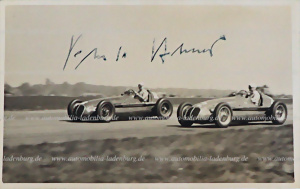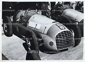 handsignierte original s/w Aufnahme Alberto Ascari auf Maserati 4CLT, signiert von Ascari, 9x14cm