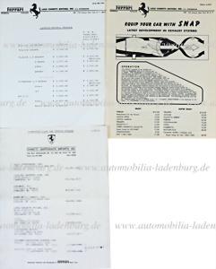Konvolut 3tlg., darunter: 1976 internes Händlerverzeichnis „Chinetti – Garthwaite Imports INC." 3 Seiten; Einblattprospekt / Preisliste „Luigi Chinetti Motors Inc.“, SNAP Abgasanlagen für Ferrari, sowie Einzelhandelspreise Luigi Chinetti für Lancia Modelle wie GT 2+2, Flaminia 2.8, Flavia 1.8 etc..., eng. Texte