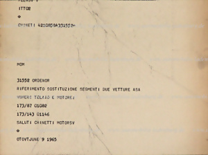 09.06.1965, Bestellung Luigi Chinetti Motors Inc. für ASA 1000 GT (#01082) sowie ASA 1100 GT (#01146), 1 Seite ital. Text