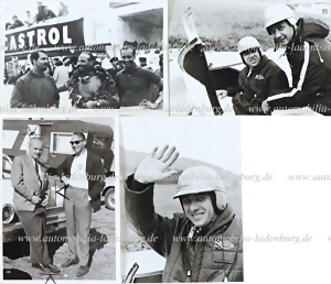Archiv von Frankenberg, Konvolut 4 original s/w Aufnahmen darunter Hans Herrmann mit Gerhard Mitter am Gaisberg; Gerhard Mitter; Edgar Barth, sowie Joakim Bonnier, Edgar Barth und Wolfgang Seidel, für Zeitschrift Chistophorus, 13x18cm