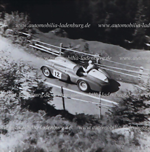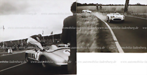 original s/w Aufnahme, von Trips vor Kling und Lundgren, alle auf Mercedes Benz 300 SL, 9,5x12cm