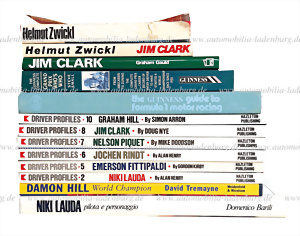 Bücherkonvolut 13 tlg. darunter z.B. 6 Ausgaben der Reihe „Driver Profiles“(2,5,6,7,8,10); „Niki Lauda pilota e personaggio“ von D. Barili; „Grand Prix Who`s Who“ von S. Small etc., verschiedene. Sprachen, weitere Titel entnehmen Sie bitte unserem Katalogbild.