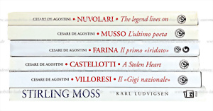 Bücherkonvolut 6 tlg. Fahrerbiografien, „Sterling Moss“ von Karl Ludvigsen; 5 Bücher von Cesare De Agostini Nuvolari, Musso, Farina, Castellotti, Villoresi Sprache en. ital. Text