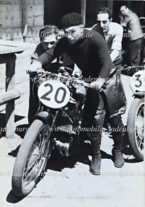 original s/w Aufnahme (Wörner), Piero Taruffi mit seiner Gilera Rondine, 18x13cm