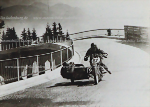 original s/w Aufnahme, Hermann Lang auf Standard mit Seitenwagen, Gaisberg 1929, 9x12,5cm
