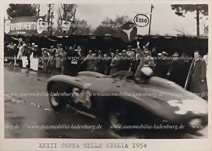 Mille Miglia 1956, der spätere Sieger Eugenio Castellotti auf Ferrari 290 MM (#0616), 10x14cm
