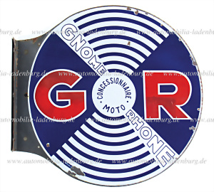 20er/30er Jahre, original Händler Emaille Schild "Gnome Rhone - Concessionaire Moto", beidseitig, 67,5x65cm, schöner Originalzustand