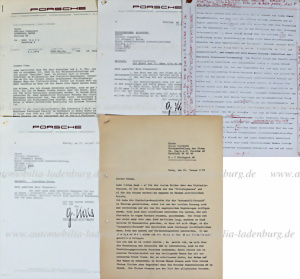 1974, Konvolut 16 Seiten Schriftverkehr zwischen Ghislaine Kaes (Porsche) und Adriano Cimarosti, betreffend Cisitalia Porsche Tipo 360, hochinteressant