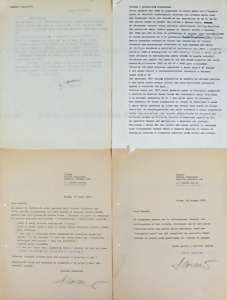 1974, Konvolut 15 Seiten Schriftverkehr zwischen Carlo Dusio und Adriano Cimarosti, 2x handsigniert von Dusio