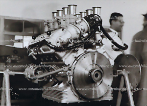 original s/w Aufnahme, Antriebsaggregat Ferrari Dino 246 F1 / 156 „Sharknose“, Foto entstand im Werk Maranello, 10x10cm