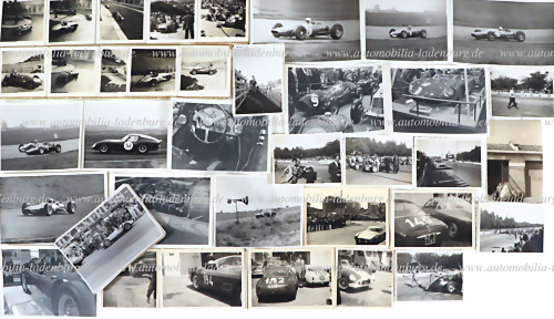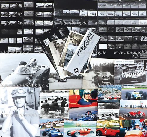 Konvolut darunter 10 original s/w Aufnahmen, 14 s/w Abzüge, sowie 19 Farbabzüge, u.a. Wolfgang Graf Berghe von Trips, Porsche 908/2 Le Mans 1972; Alfa Romeo Giulia TZ Le Mans 1964; Porsche 904 GTS Ollon Villars 1965; Fiat-Abarth 1000; Francois Cevert, Eugenio Castelotti..., verschiedene Formate,... mehr