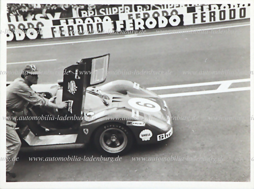 Original s/w Aufnahme Ferrari 512S (#1044) von Nino Vaccarella / Ignazio Giunti, 24 Stunden Le Mans 1970, 9x12cm
