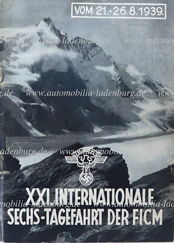 1939, Programmheft "XXI. Internationale 6-Tage Fahrt FICM", 21.-26.08.1939", 104 Seiten, mit Teilnehmerliste, sehr selten
